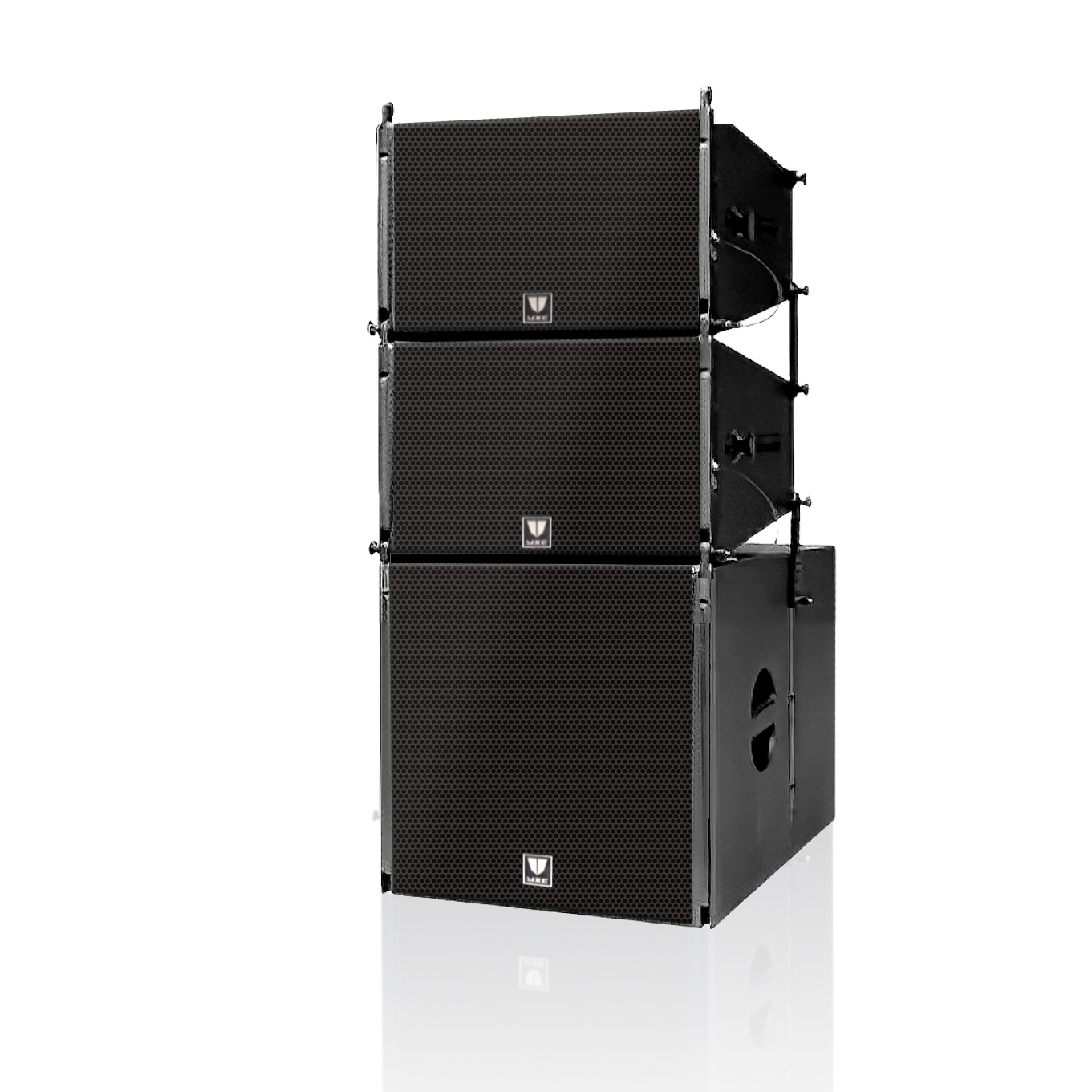 具備高聲壓特性的有源垂直陣列揚(yáng)聲器; 2. 陣列組合產(chǎn)生柱狀聲波,倍距離聲壓衰減僅3dB; 3. 避免傳統(tǒng)多音箱組陣擴(kuò)散擴(kuò)聲產(chǎn)生聲干涉; 4. 具有獨(dú)立數(shù)字式功率放大器驅(qū)動(dòng); 5. 可使用平衡線遠(yuǎn)程傳輸信號(hào); 6. 內(nèi)置DSP數(shù)字音箱處理器,具備電子分頻功能; 7. 提高直達(dá)聲聲強(qiáng),減少T60過長(zhǎng)對(duì)聲音清晰度的影響; 8. 采用12英寸鋁盆低音單元,具有高剛性輕質(zhì)復(fù)合振膜; 9. 采用1.7英寸釹鐵硼鈦膜壓縮高音單元; 10. 采用18英寸鋁盆長(zhǎng)沖程次低音單元, 11. 配備波導(dǎo)組成60°垂直指向, 100°水平指向; 12. 箱體采用優(yōu)質(zhì)樺木夾板制造,梯型設(shè)計(jì); 13. 具備專業(yè)的保護(hù)電路,防止單元受損; 14. 箱體噴涂防潮晶點(diǎn)漆,硬度高,耐磨損; 15. 箱體配備完整的吊掛件; 16. 線路連接采用NL4標(biāo)準(zhǔn)連接器; |